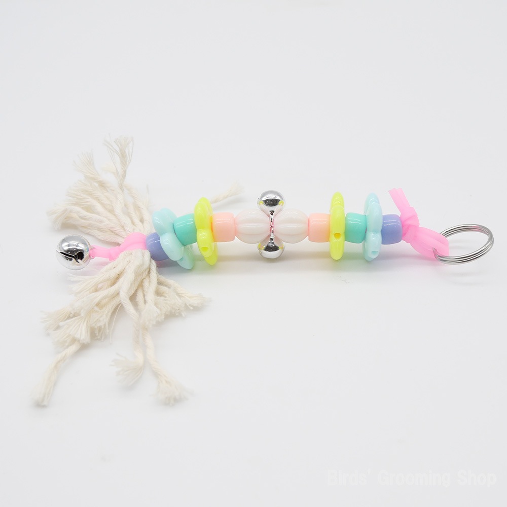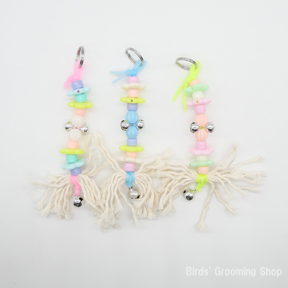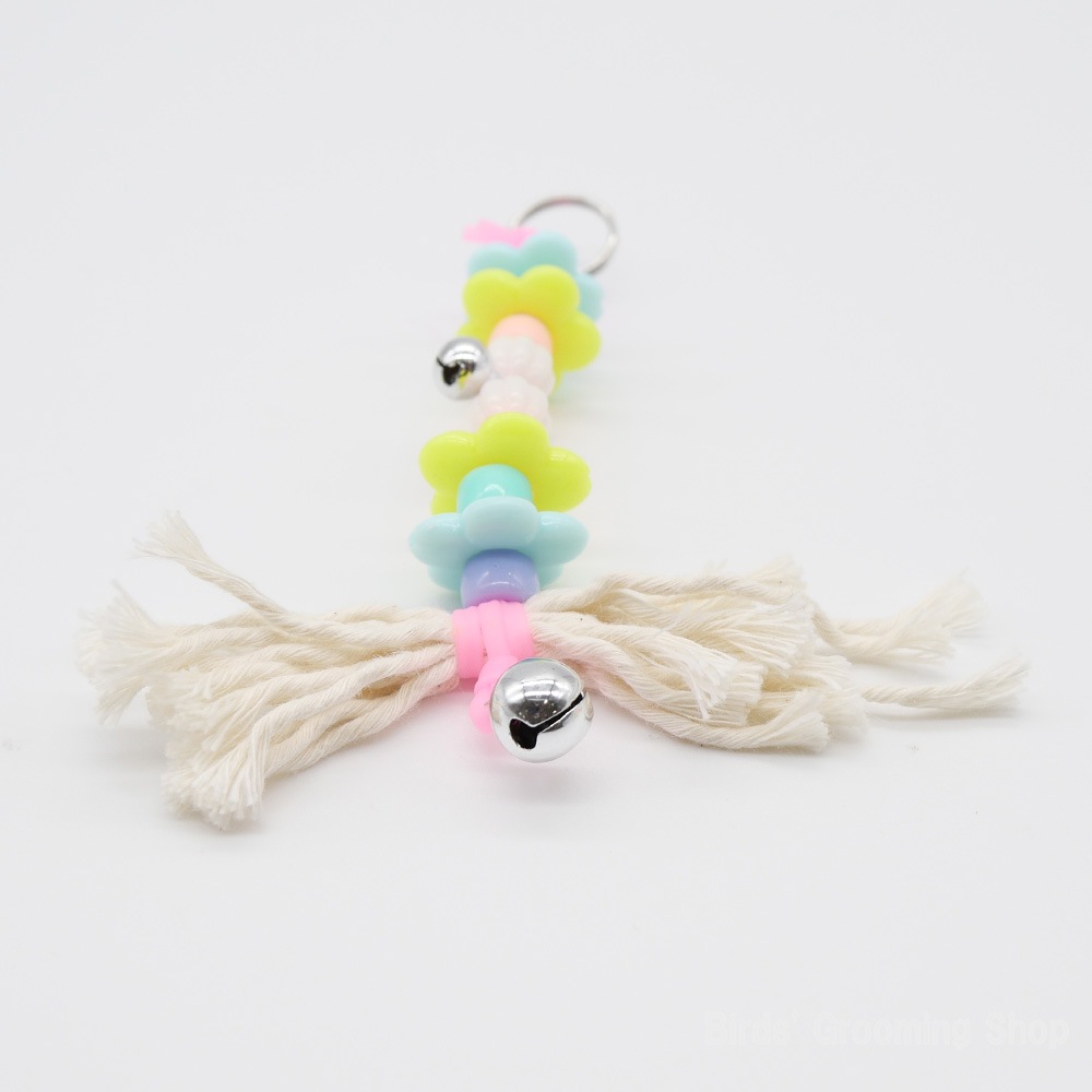 ゴムのような感触の芯材と、太さや質感の異なるロープ部分の組み合わせが鳥さんの好奇心をくすぐります。