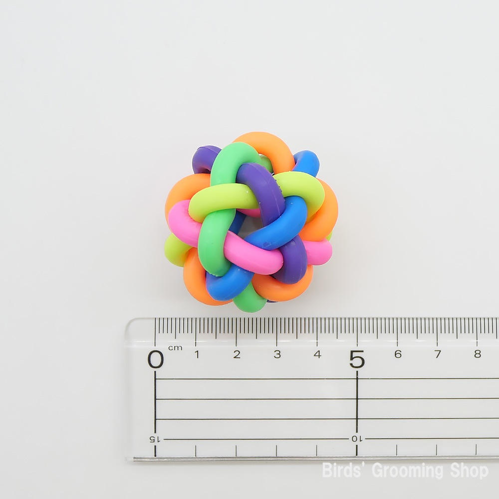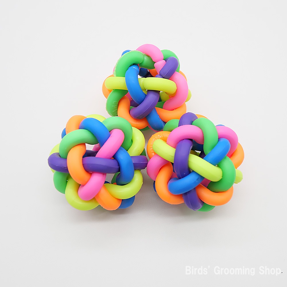 カラフルなラバーが数本重なり合っているボールです。