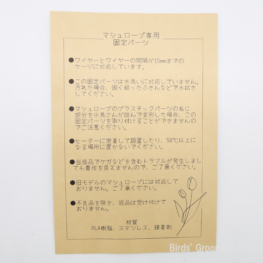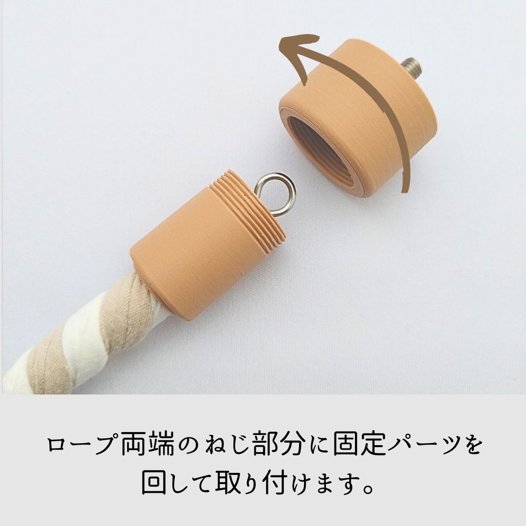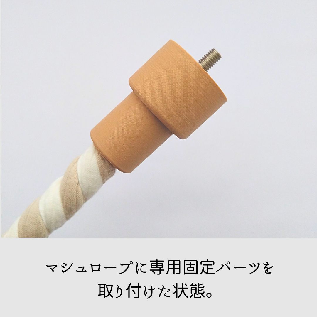 - 固定パーツおよびマシュロープのプラスチックパーツのネジ部分が変形してしまった場合、この固定パーツを取り付けることができませんので、ご注意ください。
